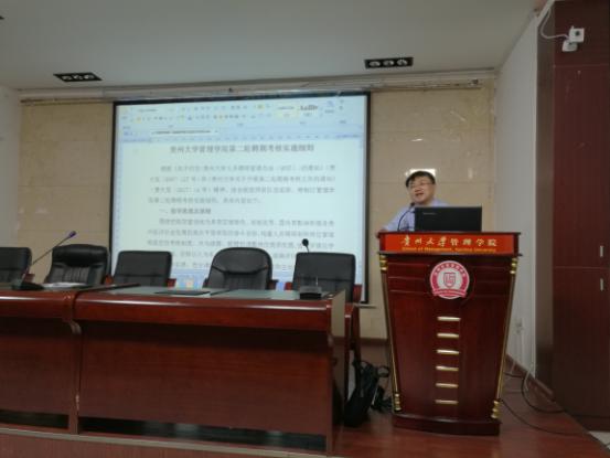 院长李烨向全院教职工介绍了《体育竞猜网(中国)官方网站第二轮聘期考核实施细则》,包括指导思想及原则、考核范围、组织领导、考核内容及要求、考核等次、考核方法和程序、考核时间安排、考核结果的使用和纪律要求;管理学院教学科研型、教学型岗位考核标准及第二轮聘期内工作量计算细则等。李院长强调开展聘期考核是必然趋势,逐步优化考核方案是使考核能更加科学合理地评价教职工履职尽责情况的途径,希望各位高度重视此次考核工作,提前做好迎接考核的相应准备工作。