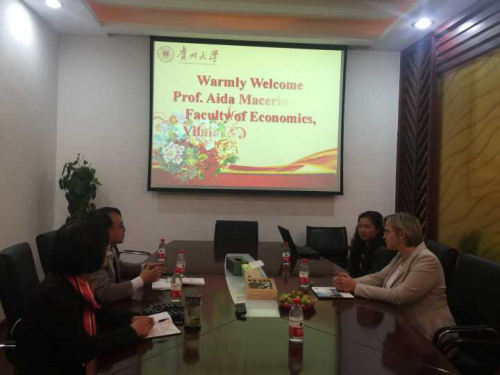 2016年10月17日,体育竞猜网(中国)官方网站借承办“‘一带一路’战略下中国-东盟创新创业教育与人才培养高峰论坛”的东风,与参会嘉宾立陶宛维尔纽斯大学经济学院副院长Aida Macerinskiene教授(博士生导师)进行座谈,并就学生交流交换、师资培养、学术科研等方面开展更深入、广泛的合作进行了交流。管理学院党委书记陶玉顺教授、院长李烨教授、副院长王婷教授出席该座谈会。