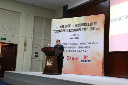 10月31日,2015年度第33期贵州省工商联“优秀会员企业家成长计划”培训在贵州大学一号行政楼报告厅举行。该培训是由中共贵州省委统战部、省工商联主办,体育竞猜网(中国)官方网站、贵州长通公司承办,贵州大学EMBA教育中心协办的一项长期企业家系统培训课程。该计划旨在整合全国一流学府资源,汲取一流学者思想精髓,帮助贵州企业家洞悉经济大势,深度思考企业战略,为贵州“后发赶超”提供智库保障。全省各地州市共计209名企业家代表以及管理学院院长李烨、副院长周莉莉、院企合作办杜娟、王云老师及部分师生参加了当天的培训活动,院长李烨致欢迎辞。