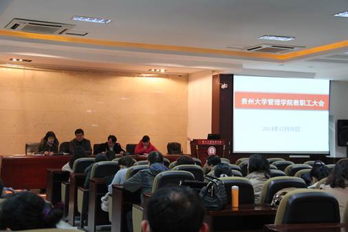李烨院长回顾近一个月来学院工作进展情况,指出体育竞猜网(中国)官方网站在刚刚过去的一星期主办及协办好了三场大的会议:中国MBA西南联盟2014年年会,“美丽中国•云上贵州”2014阿里云开发者大会西南峰会三个分会场会议(协办),EMBA第十一期班开学典礼和学院第二届新年名家讲坛,进一步扩大了学院影响力。接下来,学院将抓好学生期末考试考风考纪工作;做好学院2014年年终考核工作;鼓励广大教师参与课题申报及研究,为教师提供更多更好的平台,为教师提升自我能力提供帮助。
