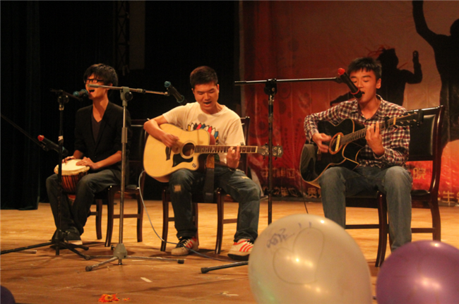 青春需要狂欢,一首吉他弹唱《如果你冷》赢得了在场观众的阵阵掌声和尖叫声,由器乐队演唱的《I’m yours》瞬间又调动了现场的气氛,紧接着,充满民族风情的独舞《巴略梦》韵味十足,在口技加民族乐器表演中,表达出了一个学弟对大四学姐学长的祝福。
