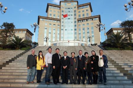 2014年11月4日下午4点,盘县浙江商会第四届选举大会暨成立十周年庆典仪式在盘县红果大酒店举行。管理学院院长李烨教授出席庆典仪式并作了重要讲话。出席仪式的有贵州省工商联副主席张钊先生、省交勘院党委书记贾龙同志等EMBA学员;还有六盘水市人大副主任、工商联主席陶兴锐、盘县人民政府副县长张毅、盘县政协副主席、工商联主席陈长江等相关领导。我校EMBA学员李守安同志全票当选盘县浙江商会主席。