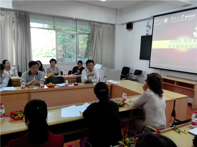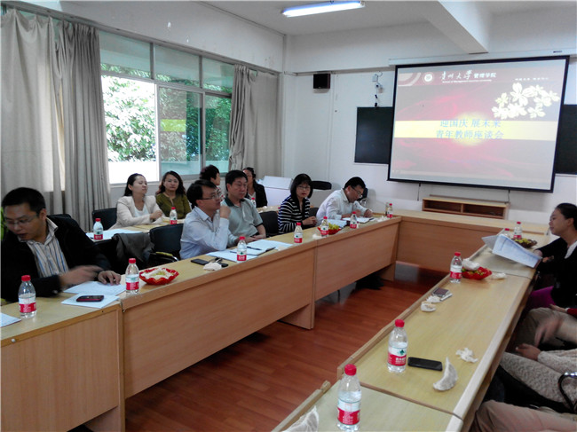 院长李烨教授首先向与会青年教师传达了本次座谈会的议题,主要是听取青年教师对学院发展的意见和建议,和全院教职工一起努力实现美丽管院“中国梦”。并动员青年教师们积极报名参加浙江大学为贵州大学定向培养博士生考试。