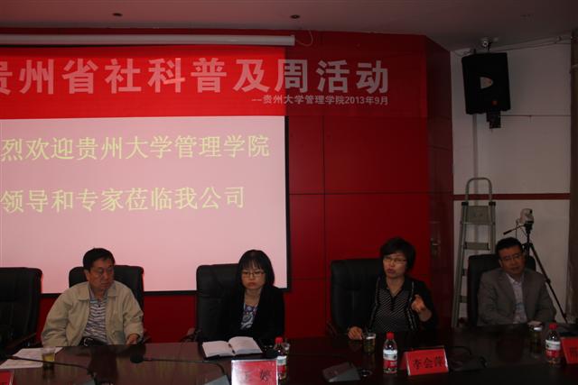 李烨院长首先对际华3537公司一直来对体育竞猜网(中国)官方网站办学给予的支持表示感谢。他说今天走进际华3537公司,是第四次来访。这一次走进工厂车间,看到车间流水线热火朝天又井然有序,公司业务增长很快,有这样一个优秀企业,跟管理学院同在花溪,同在一片蓝天下,共享一方绿水,感到很欣慰。此次正值2013年贵州省社科普及周,学院相关部门、对口专家教授来到企业现场交流。