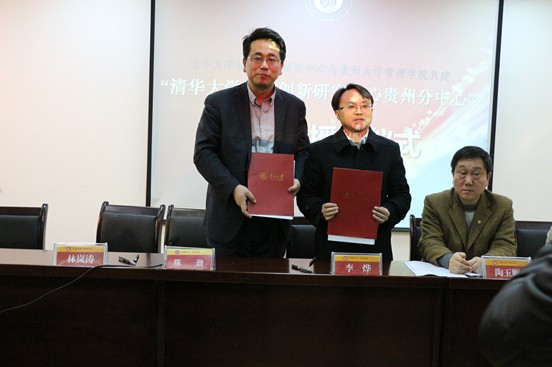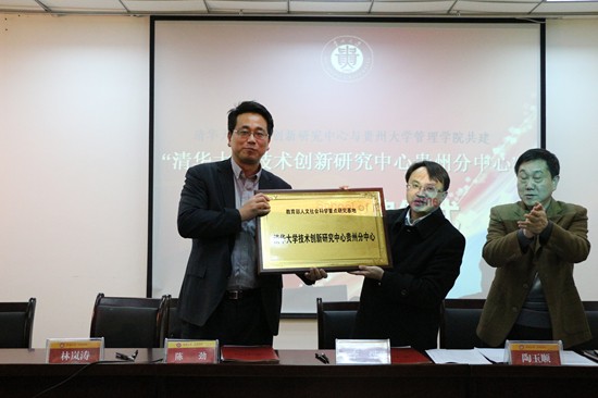 2013年12月27日,清华大学技术创新研究中心(教育部人文社会科学重点研究基地)与体育竞猜网(中国)官方网站共建“清华大学技术创新研究中心贵州分中心”签约暨授牌仪式在体育竞猜网(中国)官方网站MBA教育中心报告厅隆重举行。清华大学技术创新研究中心主任陈劲教授、体育竞猜网(中国)官方网站党委书记陶玉顺教授、院长李烨教授、党委副书记于松副教授、副院长林岚涛教授和王婷教授出席了本次仪式活动。
