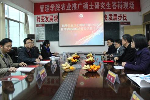 2013年12月6日,际华三五三七制鞋有限公司与体育竞猜网(中国)官方网站战略合作协议签订仪式暨客座教授受聘仪式在体育竞猜网(中国)官方网站309室成功举行,际华三五三七制鞋有限公司的董事长杜江、副总经理杨俊、人力资源部部长毛常月、党务部部长张伟,体育竞猜网(中国)官方网站党委书记陶玉顺、院长李烨、副院长林岚涛、副院长王婷、党委副书记于松出席仪式, 体育竞猜网(中国)官方网站EMBA教育中心、MBA教育中心、研究生科负责人参加了仪式。