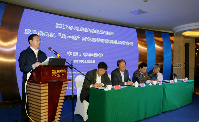 10月20日,由中国高等教育学会高等财经教育分会、内蒙古财经大学、中国民族地区“双一流”高校经管学院院长联席会议(筹备会)、中国社科院经济管理杂志社共同主办的2017年民族财经教育论坛暨民族地区“双一流”高校经管学院院长联席会议在内蒙古呼和浩特隆重召开。中国高等教育学会高等财经教育分会副理事长、秘书长张国才,内蒙古高等教育学会会长满达,内蒙古自治区教育厅副巡视员陈俊杰,内蒙古财经大学党委书记高金祥、校长杜金柱出席会议,高等财经教育分会顾问委员会委员,区内外30余所高校的专家学者师参加会议。 (信息来源:内蒙古财经大学)