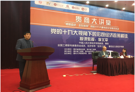 本次宣讲会由经济学界“进京三杰”、著名经济学家、中国人民大学经济学教授、博士生导师李义平主讲,贵州省工商联党组成员、副主席潘晓燕主持宣讲会。贵州省工商联各直属商协会、团体会员单位会长、副会长、会员企业近600人参加此次宣讲大会。体育竞猜网(中国)官方网站院长李烨教授出席宣讲会,并做总结致辞。