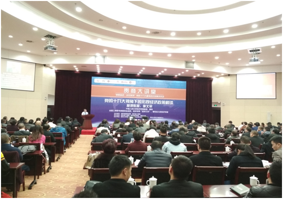 期间,李义平教授还就贯彻新发展理念,建设现代化经济体系之深化供给侧结构性改革;加快建设创新型国家;实施乡村振兴战略;实施区域协调发展战略;加快完善社会主义市场经济体制;推动形成全面开放新格局等内容进行讲解。并列举了众多生动形象的经济故事,引发与会人员的共鸣,掌声喝彩此起彼伏。