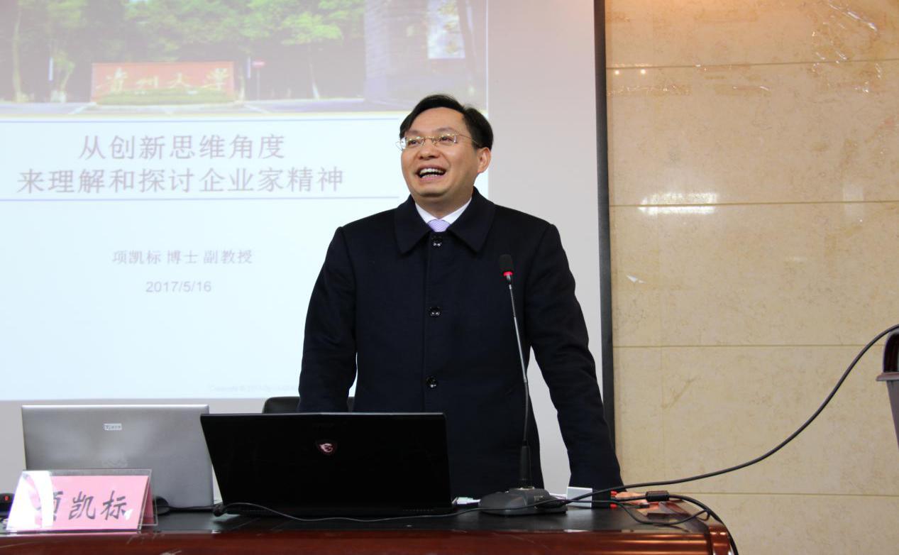 12月11日19:00,体育竞猜网(中国)官方网站在三楼报告厅继续开展深入学习宣传贯彻党的十九大精神系列讲座,学院项凯标博士受邀担任此次讲座主讲嘉宾,题为《从创新思维角度来理解企业家精神》,讲座由院党委副书记张亚军老师主持。