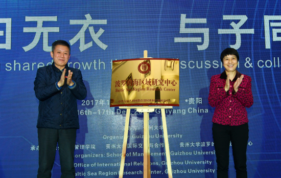 致辞结束后,龚宁、王红蕾共同为贵州大学波罗的海研究中心揭牌。