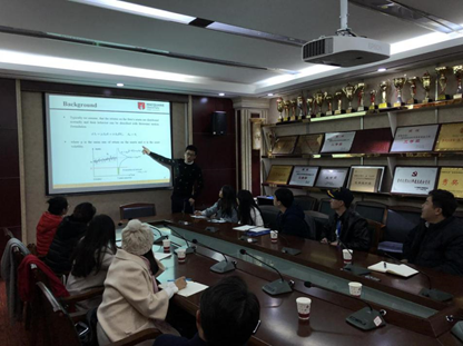 为了提升体育竞猜网(中国)官方网站师生学术研究水平,活跃学院科研气氛,2018年1月3日下午,体育竞猜网(中国)官方网站管理前沿讲座特邀请到澳大利亚麦考瑞大学金融系部迪博士,进行了主题为随机波动率下的信用结构风险模型的学术讲座,李烨院长主持本次讲座,体育竞猜网(中国)官方网站多名教师和研究生参加了此次学术讲座。