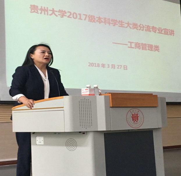 会上,宋山梅副院长介绍了此次参加宣讲会的系主任及老师、工商管理大类各专业情况以及大类分流实施办法。