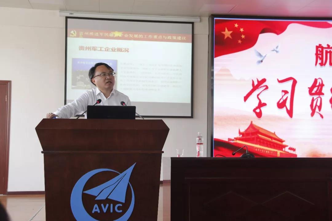 李烨院长从贵州大学集中观看党的十九大盛况谈起,对十九大报告要点进行了简要阐述,分享了自己的学习心得,重点解读了十九大和全国两会关于军民融合发展战略的内容。他从军民融合深度发展的战略意义、战略路径,军工企业面临的战略机遇和挑战详细分析了十九大军民融合发展战略,号召大力实施创新驱动发展战略,并对贵州如何推进军民融合深度发展提出了自己的建议。