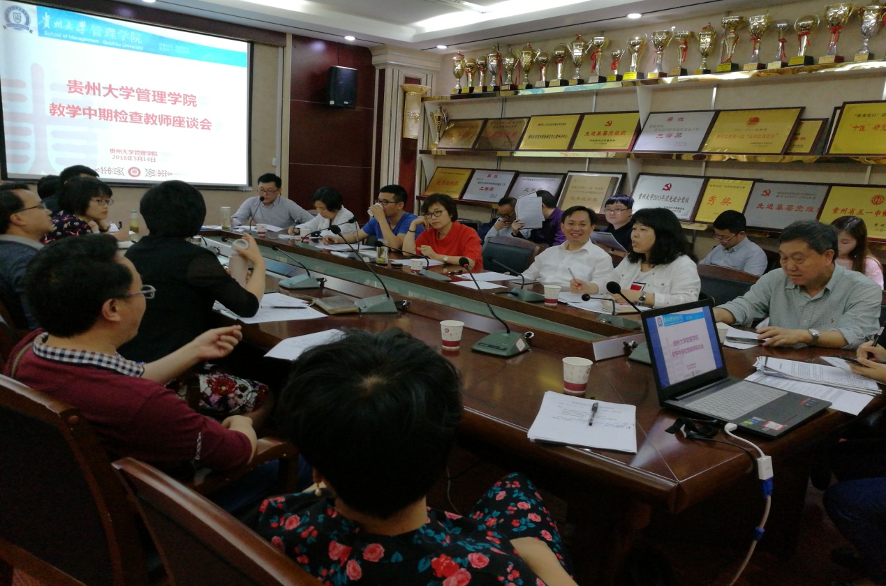 为提高教学质量,更好地完成学校教务处关于2017-2018学年第二学期期中教学检查要求,体育竞猜网(中国)官方网站于5月14日中午1点在学院一楼案例室召开期中教学检查教师座谈会。参会人员有全体院领导、学院督导组老师、各系主任、副主任、实验室中心主任、各专业教师代表、教学科等参加此次座谈会。会议由分管教学副院长宋山梅主持。