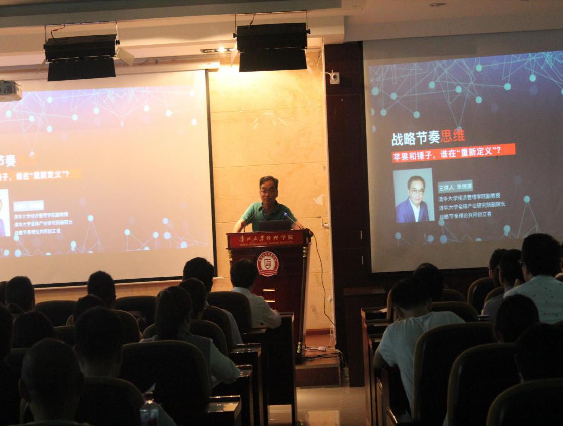 2018年5月27日下午三点半,清华大学全球产业研究院副院长朱恒源博士一行做客体育竞猜网(中国)官方网站MBA管理知识讲堂,以“在动荡的商业世界超越竞争”为题,在管理学院报告厅与百余位MBA同学分享了企业应该如何通过管理战略节奏获取与之相匹配的竞争优势等管理问题。管理学院院长李烨教授主持了本次讲座。