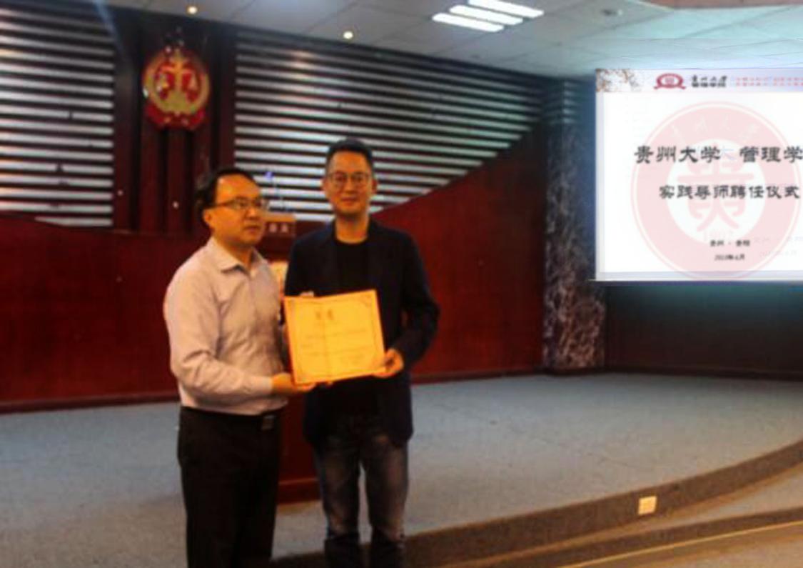 2018年6月2日 上午9:00,贵阳万科董事长受聘管理学院实践导师聘任仪式在贵州大学模拟法庭隆重举行。经体育竞猜网(中国)官方网站研究决定聘任贵阳万科董事长兼总经理吴忠友先生为体育竞猜网(中国)官方网站实践导师。管理学院院长李烨教授为吴忠友先生颁发了聘书。管理学院MBA教育中心主任刘宁副教授主持了此次聘任仪式,管理学院硕士生导师邢文杰博士等出席了此次聘任仪式。