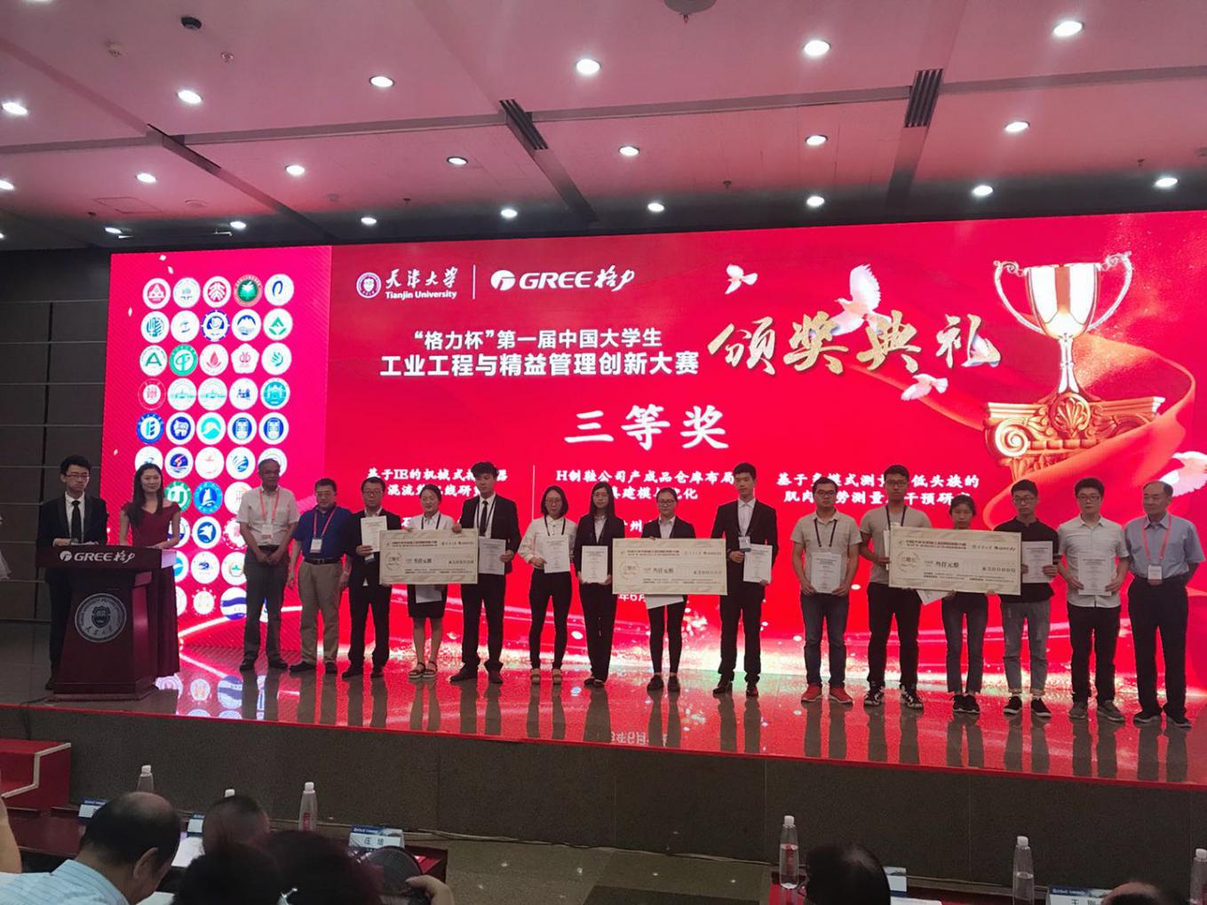 6月10日上午举行大赛颁奖典礼,首先天津大学副校长元英进教授、中国机械工程学会副理事长陆大明先生、天津市科学技术委员会创新体系处魏东处长上台致辞。随后,嘉宾依次为三等奖、二等奖、一等奖的队伍颁发获奖证书及奖金。颁奖仪式结束后,天津大学管理与经济学部主任张维教授、珠海格力电器股份有限公司副总裁庄培先生上台致辞。最后,大赛在教育部工业工程类教指委主任齐二石教授的致谢中圆满结束。