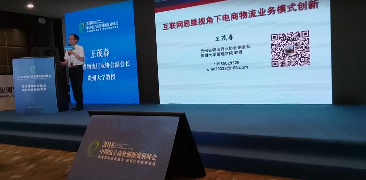 王茂春教授受邀担任2018中国电子商务创新发展峰会主讲嘉宾,在电商物流分论坛上作了题为《互联网思维视角下电商物流业务模式创新》的主题演讲。