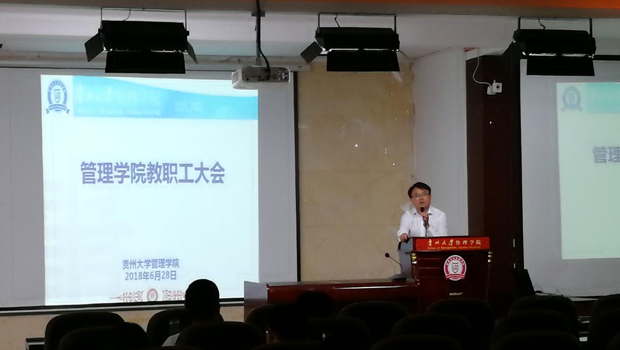 2018年6月28日中午13:00,学院在致远楼三楼报告厅召开全院教职工大会。学院领导及教职工参加了会议,会议由学院院长李烨教授主持。