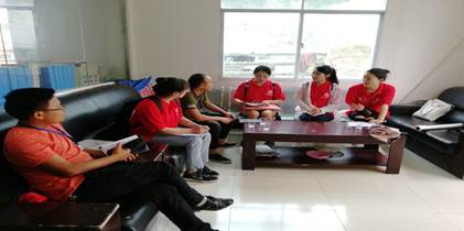 七名同学在宣威镇政府与当地工作人员就当地蓝莓种植情况、扶贫情况已经当地农户脱贫情况进行访谈。在政府工作人员的认真解答的过程中,同学们了解到了当地政府的具体扶贫政策,有“十户一体”蓝莓种植、生产、销售报团发展,通过大户发展带动小户发展,“四增一减”增加技能、效应、辐射、收入,减少贫困户等政策。然后,工作人员跟同学们分享了扶贫工作的具体效果,同学们对此次访谈认真做了记录。