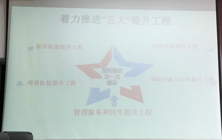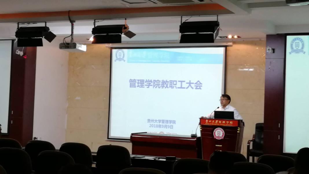 李烨院长指出,推进“双一流”建设是学院当前及今后较长时期的中心任务,要求全院教职工坚定办学方向,查找问题,补齐短板,以学科建设为龙头,以科研平台和队伍建设为载体,以人才培养为中心,以深化内部管理改革为动力,着力推进“五大提升工程”,努力为贵州经济社会加速发展、加快转型、后发赶超、同步小康,提供有力的管理人才支撑和智力支持。