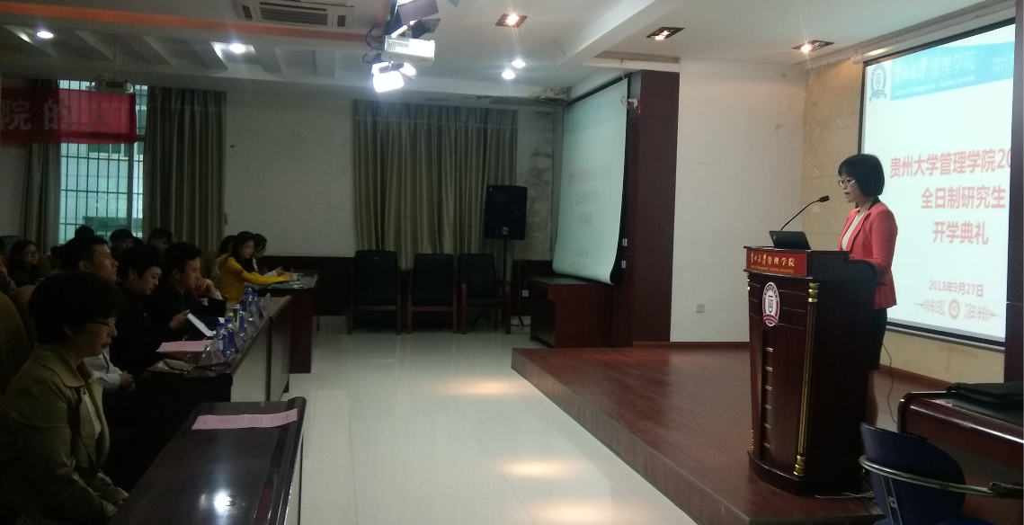 2018年9月27日早上9点,在贵州大学管理学院3楼报告厅举行了2018级研究生新生开学典礼。出席此次典礼的有贵州大学党委研究生工作部罗勇部长、体育竞猜网(中国)官方网站院长李烨教授、副院长王婷教授、副院长周莉莉教授、副院长宋山梅教授和党委副书记张亚军老师、导师代表安海燕教授以及管理学院2018级全体研究生新生。开学典礼全程由管理学院副院长王婷教授主持,她首先代表全院老师对新同学们的到来表示热烈欢迎,并期盼在今后的研究生生涯中能取得骄人的成绩。管理学院院长李烨教授致辞、导师代表安海燕博士发言、老生和新生代表依次发言,研究生工作部罗勇部长对开学典礼进行总结发言。
