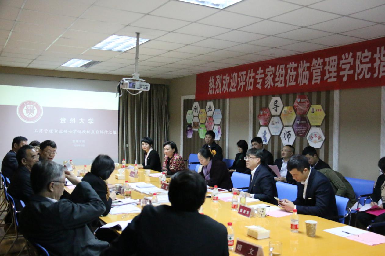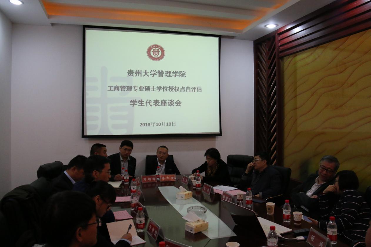 2018年10月10日上午,体育竞猜网(中国)官方网站工商管理专业学位授权点自评估专家评审会在体育竞猜网(中国)官方网站创客中心举行。评审会邀请了全国MBA教育指导委员会委员、江西财经大学原副校长吴照云教授;全国MBA教育指导委员会委员、新疆财经大学创业管理学院院长马洁教授;全国MBA教育指导委员会秘书处办公室主任王萍女士;内蒙古大学校长助理郭晓川教授;复旦大学管理学院副院长殷志文教授;电子科技大学管理学院副院长滕颖教授;贵州楚天环保有限公司教授级工程师胡文董事长作为评估专家莅临本次评审会。贵州大学研究生院常务副院长杜滨教授、体育竞猜网(中国)官方网站院长李烨教授、体育竞猜网(中国)官方网站副院长宋山梅教授、体育竞猜网(中国)官方网站副院长周莉莉教授、体育竞猜网(中国)官方网站副书记张亚军、体育竞猜网(中国)官方网站MBA/EMBA中心工作人员及本学位点教师代表和学生代表参加列席会议。