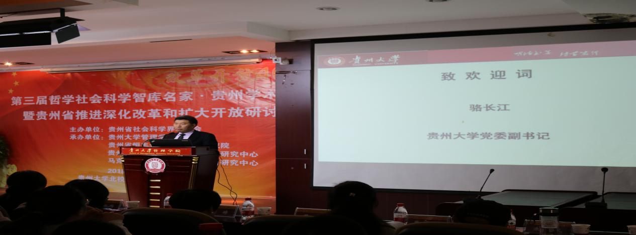 (图为贵州大学党委副书记骆长江在会上致欢迎词)