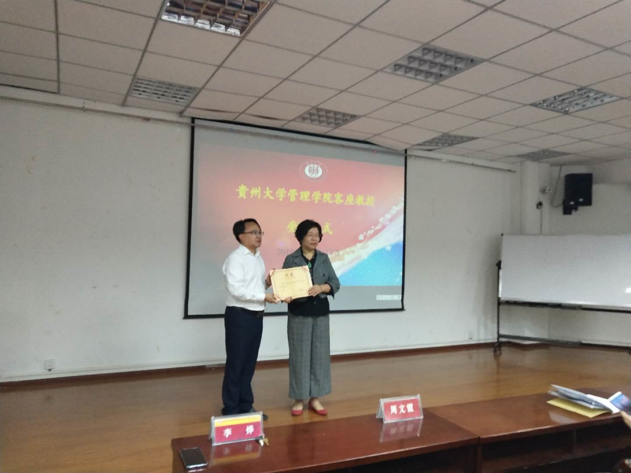 讲座由体育竞猜网(中国)官方网站副院长周莉莉教授主持,全体MBA研究生参会,并由李烨院长为周文霞教授颁发贵州大学客座教授聘书。