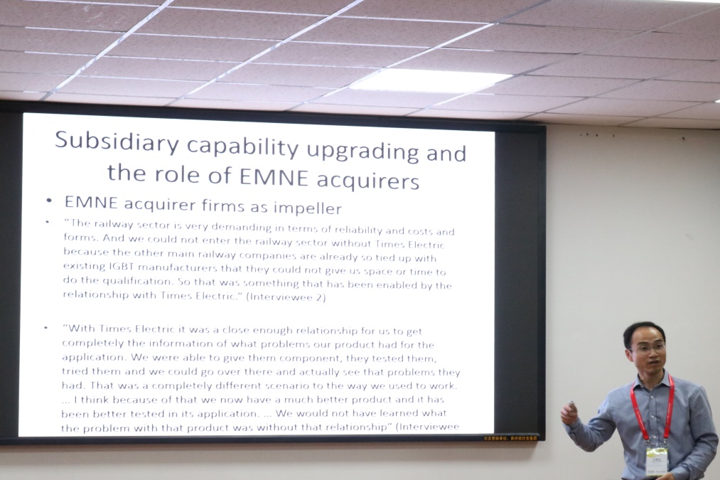 英国北安普顿大学新兴经济中心(中国)主任何绍伟博士以“新兴经济市场中收购公司能力的提升”为主题,从现今的投资背景切入,思考了收购活动中知识双向流通问题,以时代电器并购Dynex公司为例,对收购公司的能力提升进行了详细分析。
