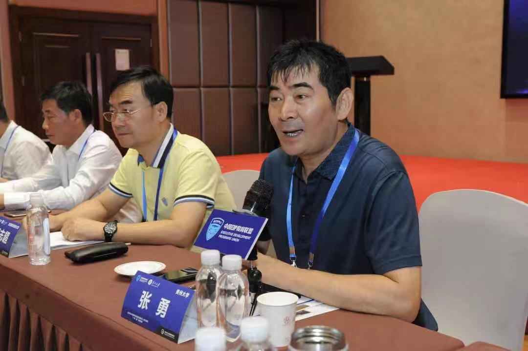 孙主席对大会作中国EDP教育联盟2019年上半年工作总结。孙主席指出,中国EDP教育联盟自2011年成立以来,一直坚持“求知、悟道、修身、结缘”的核心价值观,用最高品质的智库资源,在各校之间开展师资共享、移动课堂、学员互访和交流活动,整合全国优秀的商学院资源,引领中国企业家的学习和成长。2019年上半年,联盟持续坚持不断研发创新项目,持续推进移动课堂、师资输出、学员互访、校园开放周等活动,深受各高校EDP中心及学员欢迎;今年上半年举办的第五届戈壁挑战赛、十校联办转型精进研修三期班等项目,各界反响热烈,成果值得肯定。