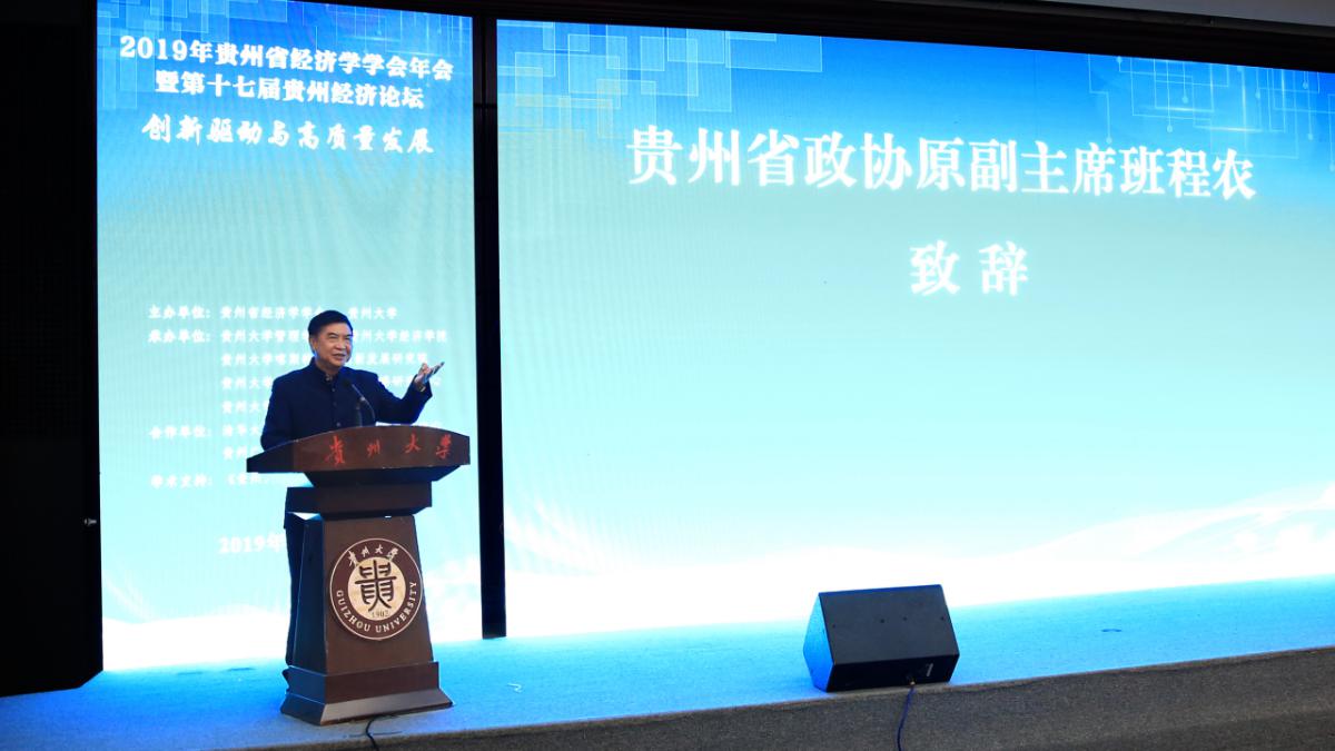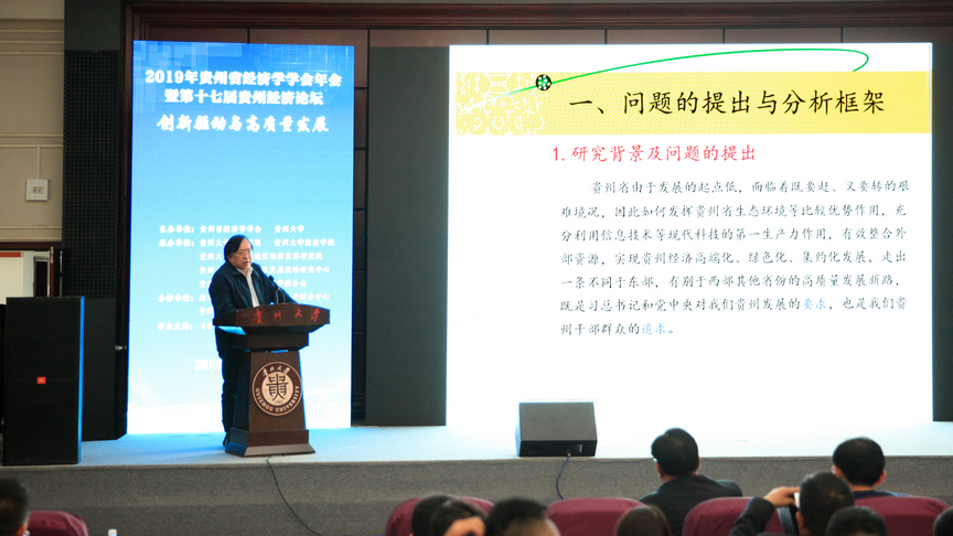 20191019日,2019年贵州省经济学学会年会暨第十七届贵州经济论坛在贵州大学东区行政楼1号报告厅隆重召开。本次会议由贵州省经济学学会和贵州大学联合主办,体育竞猜网(中国)官方网站、贵州大学经济学院、贵州大学喀斯特地区创新发展研究院、贵州大学喀斯特地区发展战略研究中心以及贵州大学校友总会管理学院分会联合承办。此次会议的主题为“创新驱动与高质量发展”,吸引了来自省内外创新学者、政企创新实践者、科研院所相关领域人员300余名。与会代表共商创新驱动模式打造贵州经济发展新引擎,谋求新时代经济与社会的高质量发展。
