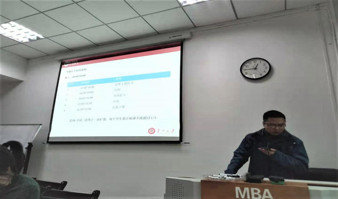 会议伊始,副主任何勇跃老师向大家介绍了MBA教育中心各老师的职责和分管情况,紧接着通报了各年级近期工作的计划与安排,并重点对学生考勤管理和奖学金制度进行了讲解。