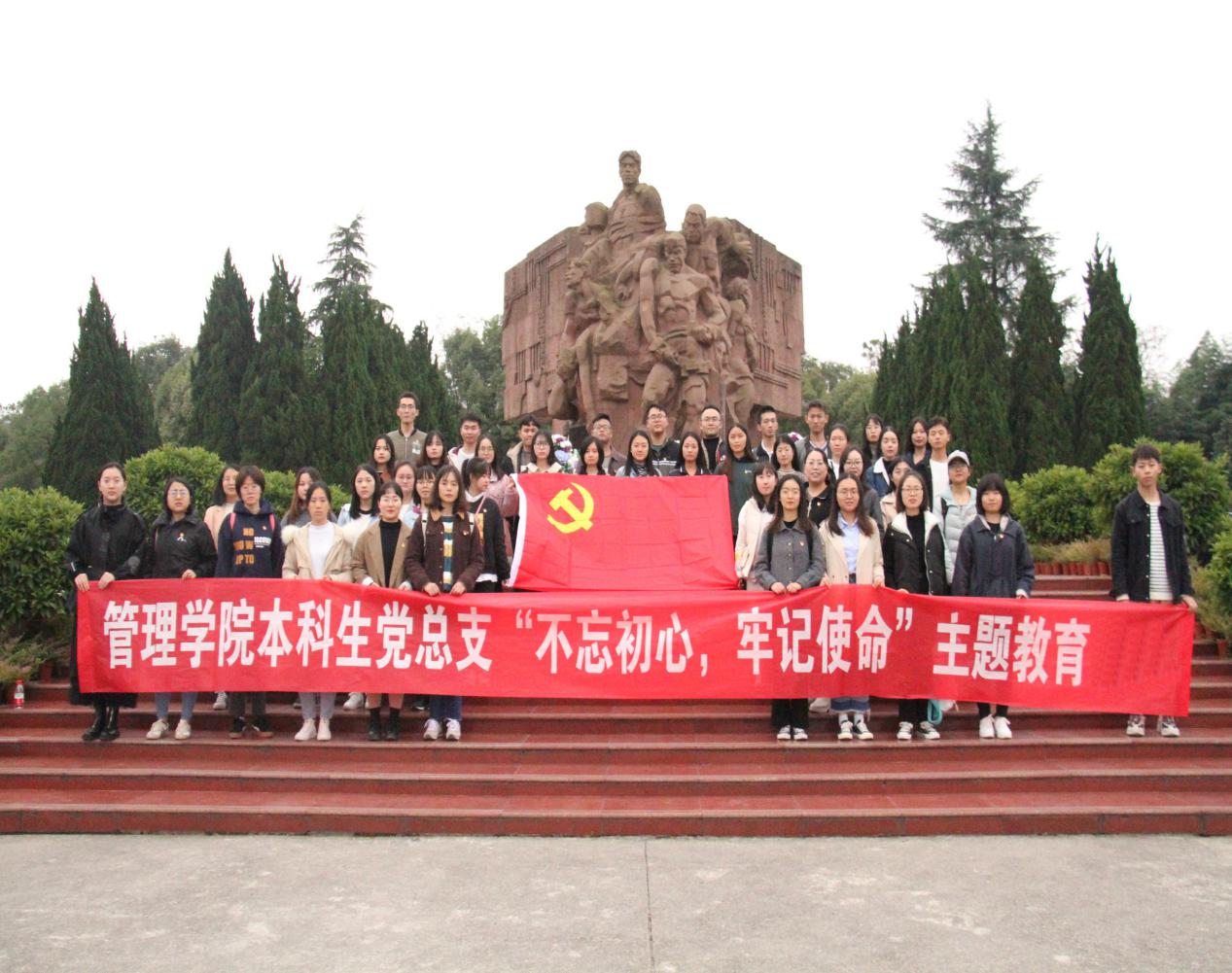为进一步深入开展革命传统教育和爱国主义教育,结合学院党委“不忘初心、牢记使命”主题教育实施方案。11月9日上午8:00,管理学院本科生党总支组织本科生全体党员由党总支书记芮丽华、第一党支部书记陈芊羽、第二党支部书记向珂莹、第三党支部书记车婧娴四位老师带队前往息烽爱国主义教育基地参观。