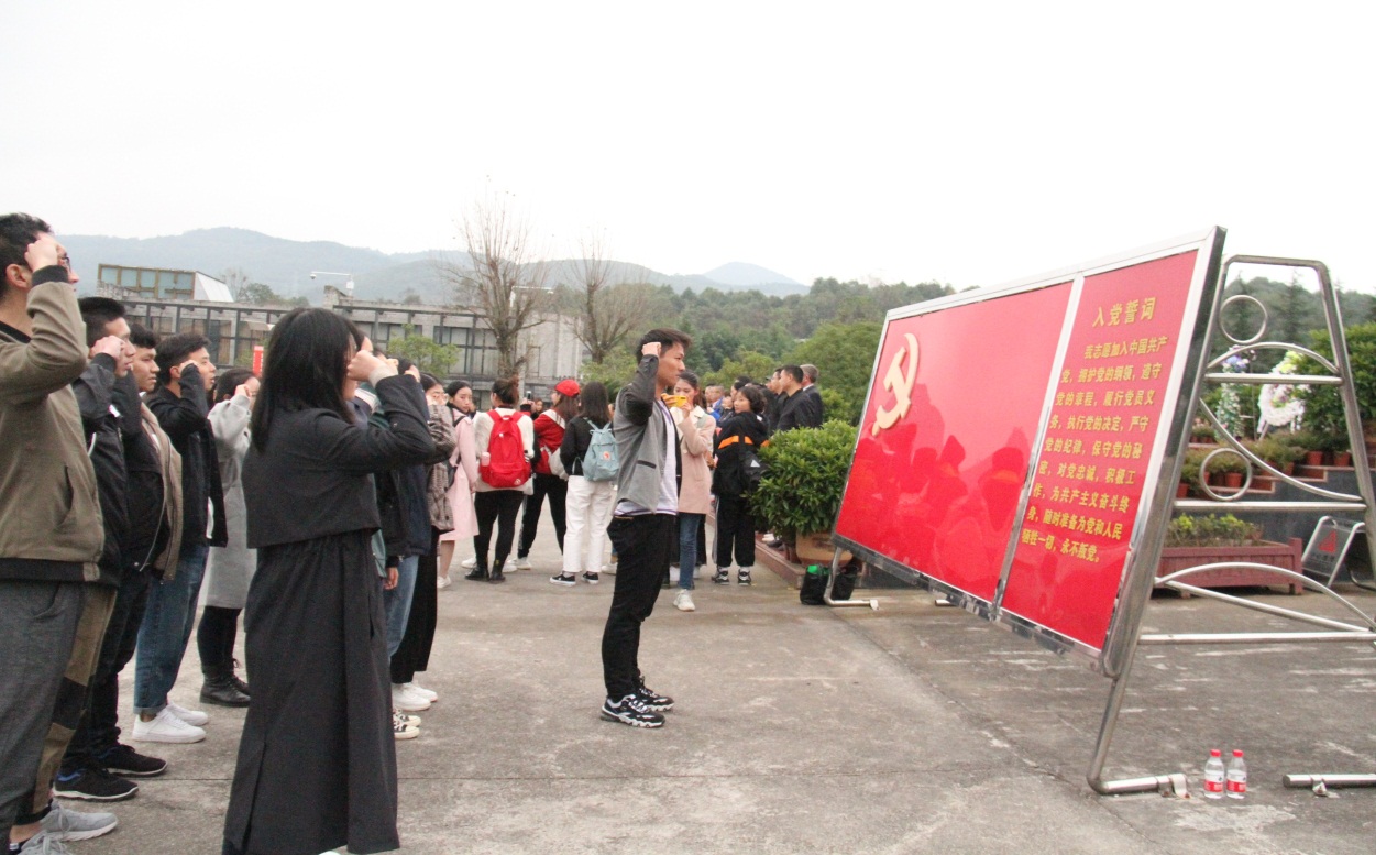 在烈士雕塑下,每个党支部都再次重温入党誓词。第一党支部带着对烈士的敬仰深情的唱出“没有共产党就没有新中国”!第二党支部通过朗诵诗篇将自己对共产党的情感都寄托在诗歌中。每一位党员通过对历史的回顾,了解革命先辈们浴血奋斗的感人事迹,接受了革命精神的洗礼,激发了爱国主义情怀。