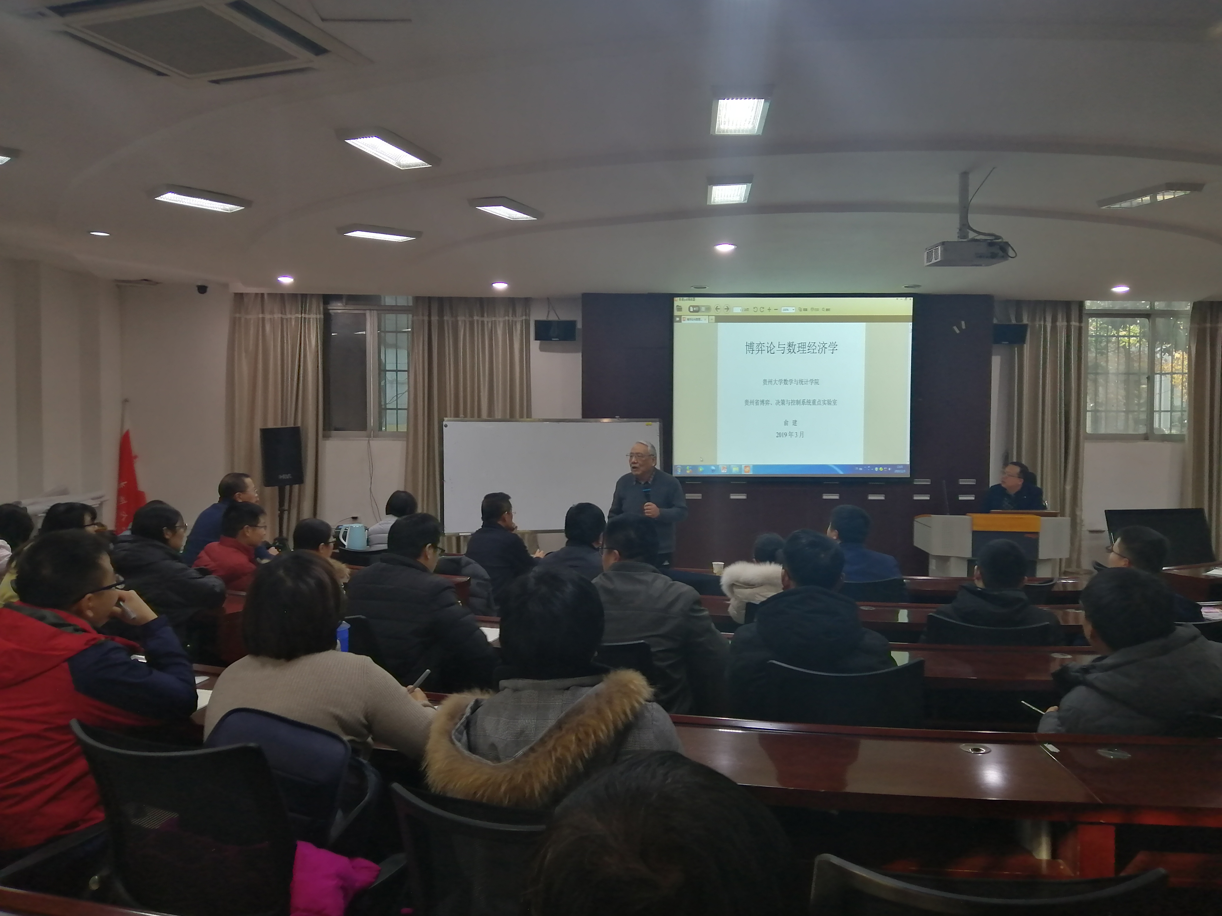 12月9日下午15:00,贵州大学数学与统计学院俞建教授莅临体育竞猜网(中国)官方网站,在管理学院一楼圆形教室报告厅做了题为“博弈论与数理经济学”的专题讲座。讲座由管理学院副院长王婷主持,管院部分教师及2018级全体研究生到场聆听。