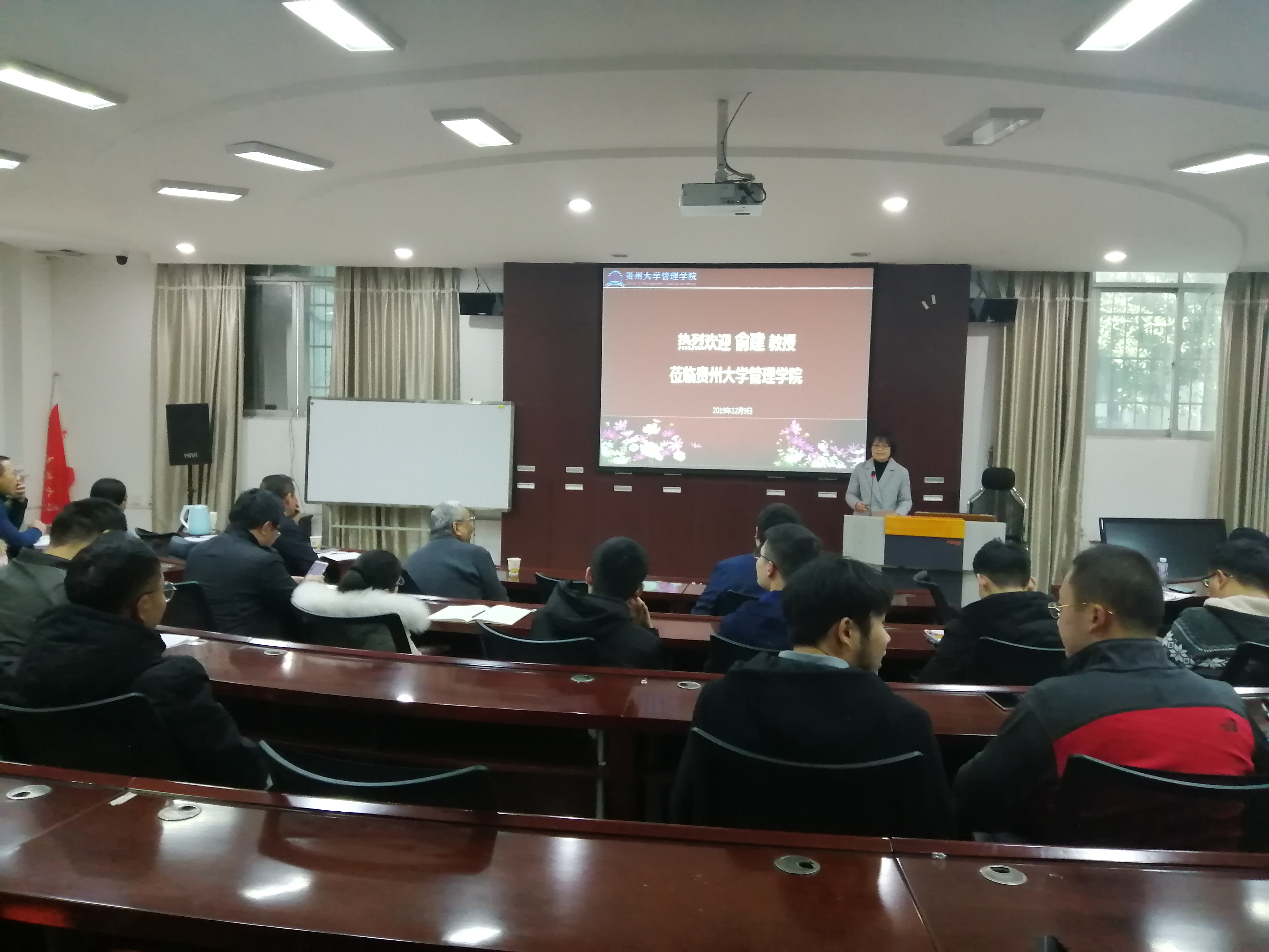 129日下午15:00,贵州大学数学与统计学院俞建教授莅临体育竞猜网(中国)官方网站,在管理学院一楼圆形教室报告厅做了题为“博弈论与数理经济学”的专题讲座。讲座由管理学院副院长王婷主持,管院部分教师及2018级全体研究生到场聆听。