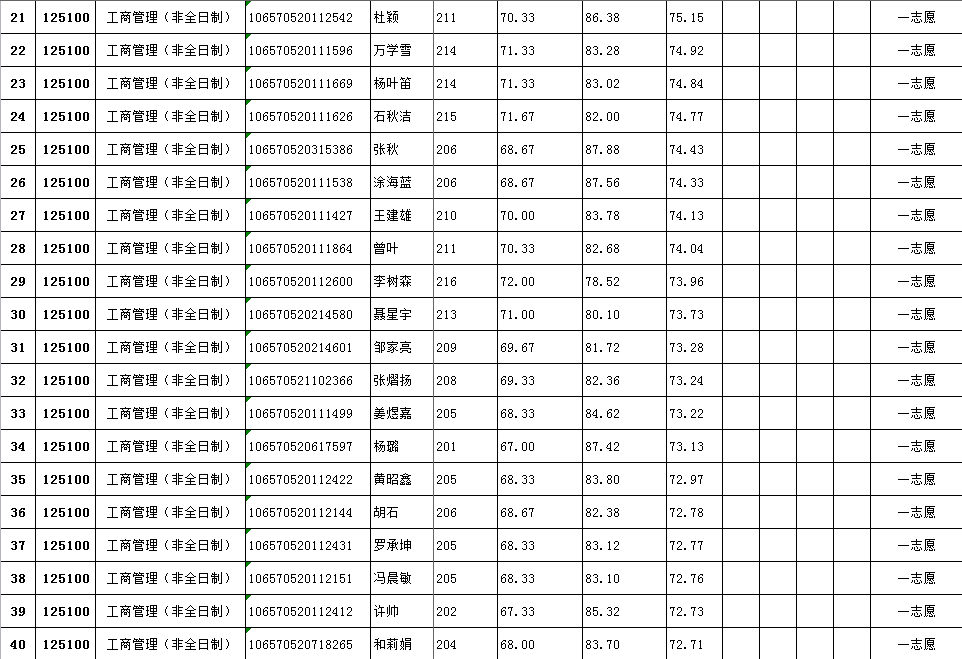 贵州大学2020年工商管理硕士研究生复试结果公示