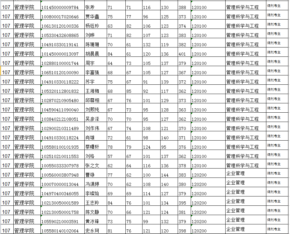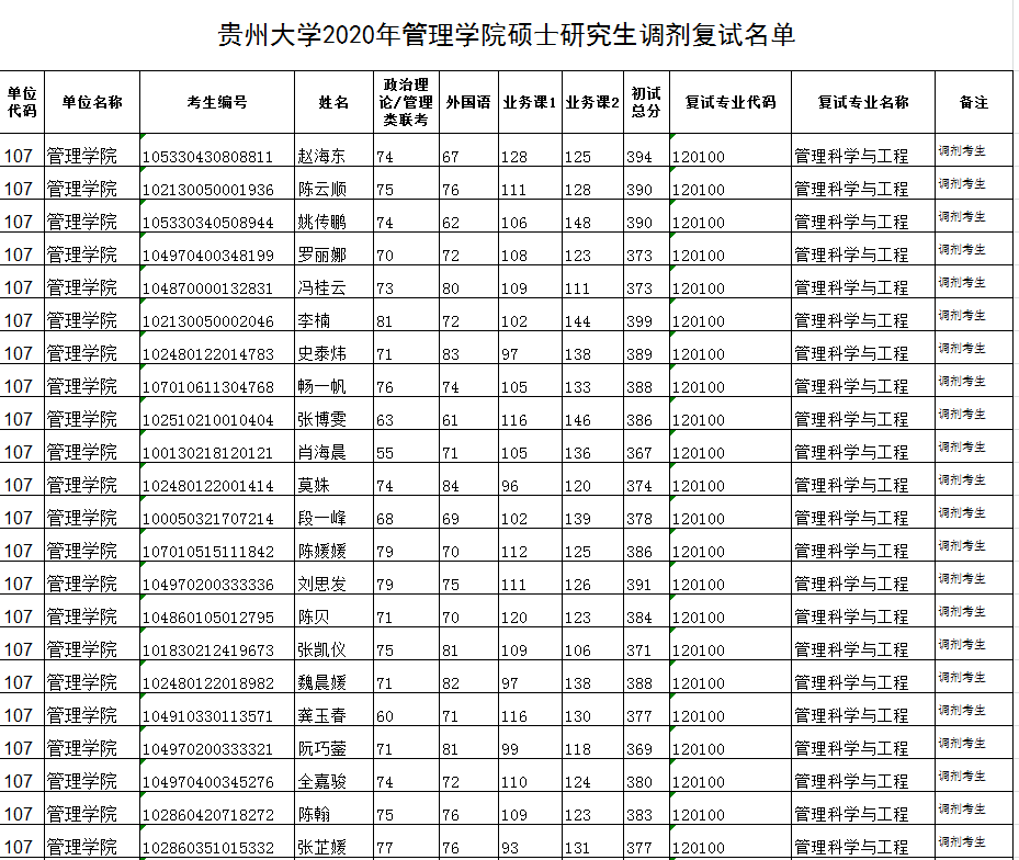 贵州大学2020年管理学院硕士研究生调剂复试名单