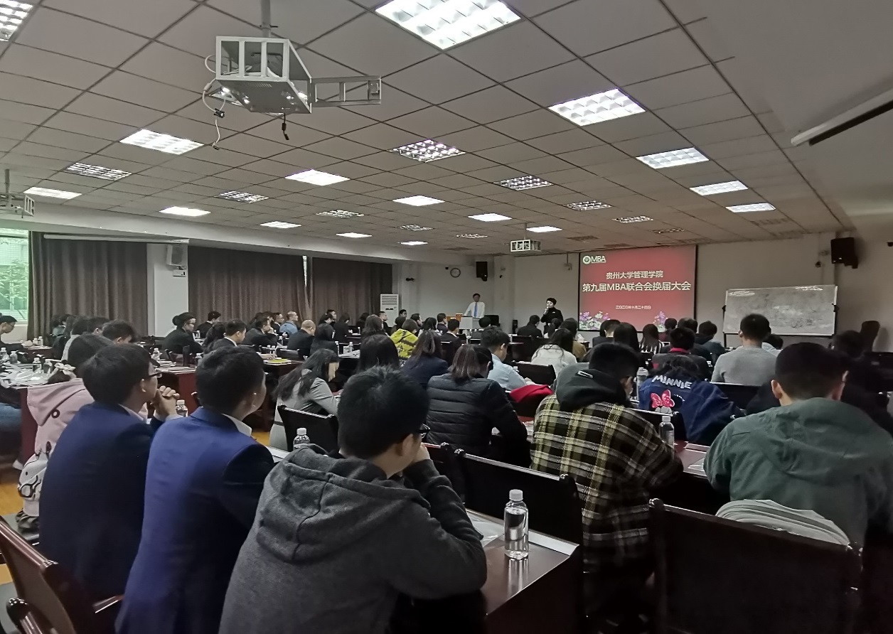 之后,主持人宣读贵州大学第九届MBA联合会换届大会通知及报名候选人名单,候选人按照抽签顺序依次发表5-10分钟竞选演讲。