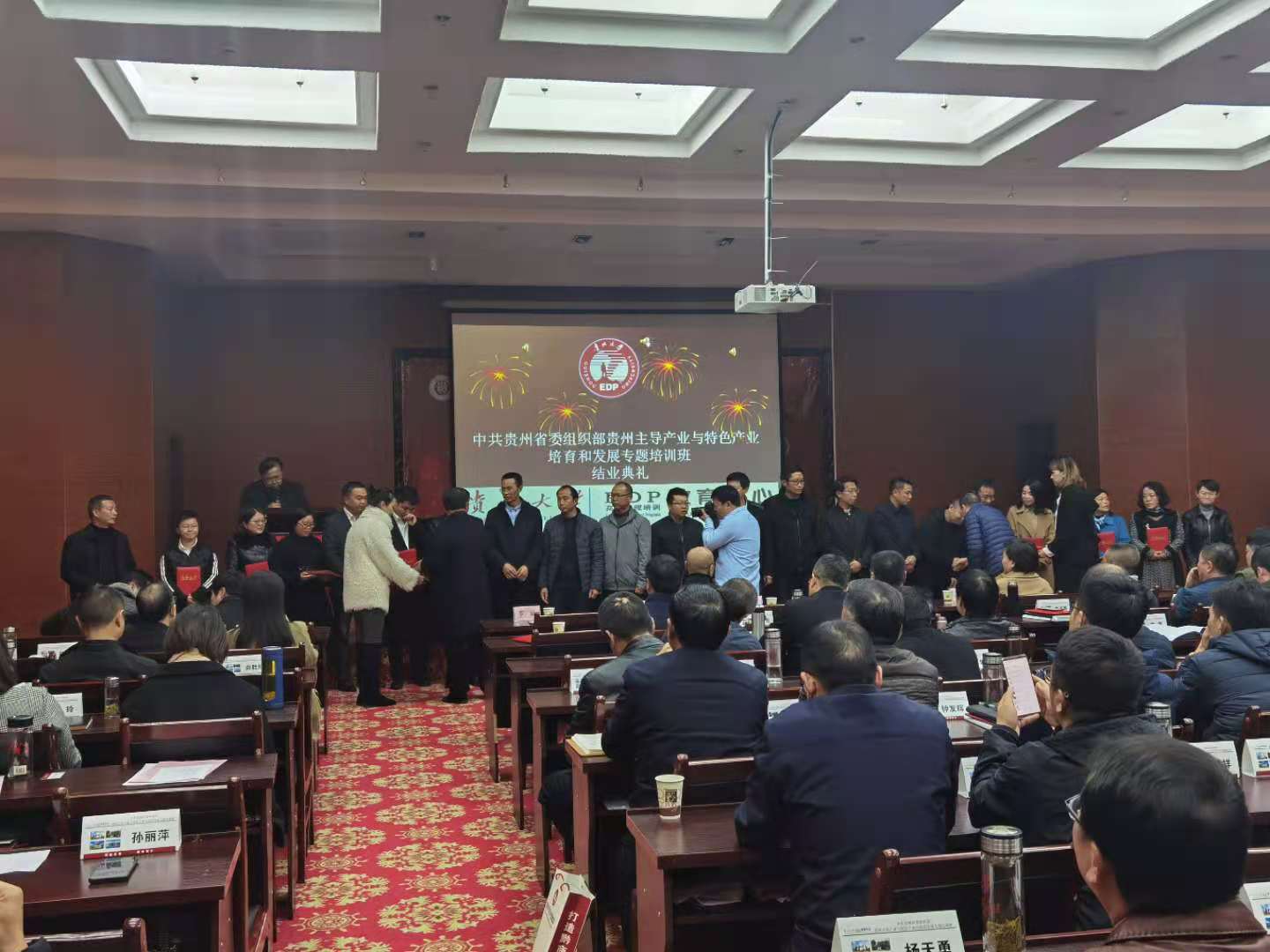 2020年11月27日,中共贵州省委组织部与体育竞猜网(中国)官方网站联合举办的《贵州主导产业与特色产业培育和发展培训班》二期班结业典礼在贵州大学北校区双馨园五楼会议室举行,贵州大学吴攀副校长、贵州大学宣传部李天强副部长、体育竞猜网(中国)官方网站王秀峰书记、管理学院宋山梅副院长、管理学院周莉莉副院长、管理学院罗敏副院长、贵州大学EDP教育中心张勇主任出席了结业典礼。