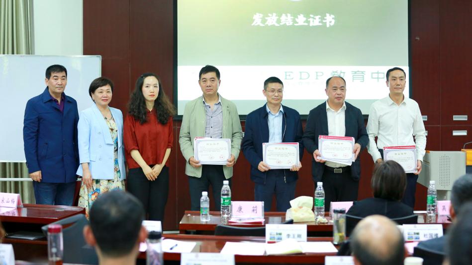 贵州大学组织部副部长康莉、管理学院副院长宋山梅、贵州大学EDP教育中心主任张勇为学员们颁发结业证书。