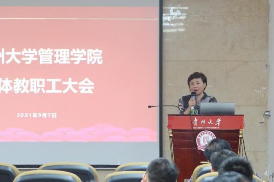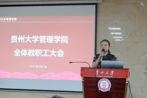 宋山梅就本科生教师教学水平和本科生综合素质提升指出,老师们要重视一流专业、一流课程的项目申报,积极筹备开展相关学科竞赛活动,在学习中提高教学水平,并提到要提高博学课程的覆盖范围和教学质量,为考研学子铺筑更顺畅的考研之路。周莉莉提出要稳步推进工商管理硕士教学质量提升工作,进一步充实教学案例储备,给学生们上一堂把握时代脉搏的管理科学课,并表示在就业方面要积极推动学生与企业对接,助力打造学校与学生共繁荣的双赢局面。罗敏总结了上一阶段学院取得的科研成果,勉励学院教师致力学术研究,并表示学院将会提高学术会议召开频次,积极吸纳优秀社会科学研究者的思想,在兼容并扩中发展出一条贵州大学管理学院独有的科学发展道路。
