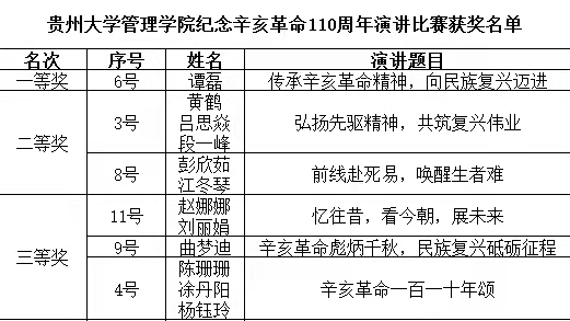 随后,管理学院研究生科科长徐兰老师说,今年是辛亥革命110周年,是中国共产党成立100周年,在这个重要时刻,我们在这里以演讲比赛的形式纪念辛亥革命,缅怀孙中山先生等民主革命先烈,各位参赛选手不仅发扬了中华民族优秀革命先驱与时俱进的革命精神,同时展现出体育竞猜网(中国)官方网站研究生青年良好的精神风采。