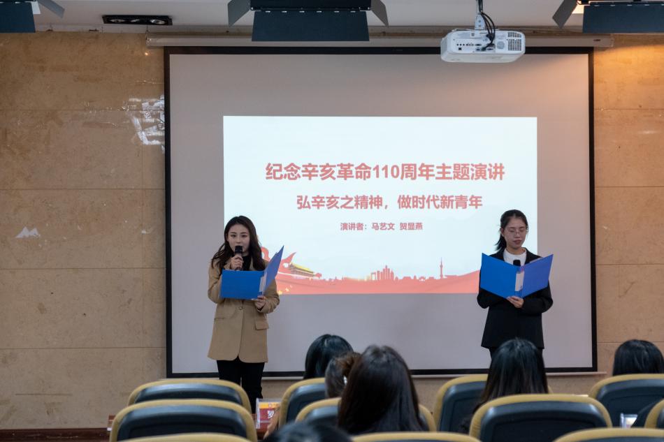 为深入学习贯彻习近平总书记在纪念辛亥革命110周年大会上的重要讲话精神,培养管理学院研究生学子服务国家服务人民的社会责任感,11月10号下午,管理学院研究生“弘扬革命先驱精神,共筑民族复兴伟业”主题演讲比赛在我校东校区致远楼三楼报告厅举行。管理学院党委副书记洪影秋出席活动,院研究生科科长徐兰、辅导员罗敬以及研团委、三助中心等校级组织学生代表参与此次活动并担任评委。活动由2021级管理科学与工程硕士研究生胡玲玲、吴冠熊主持。