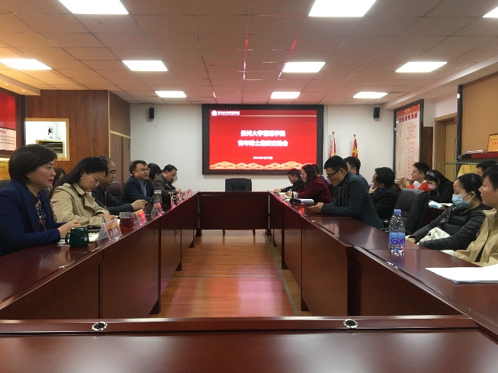 4月20日上午10点,学院在致远楼三楼陈列室召开青年博士座谈交流会。校哲学社会科学研究院周乐欣副院长应邀出席会议,学院领导班子、各系主任、近三年新进青年博士、在读博士共同参加会议,会议由院长李烨主持。