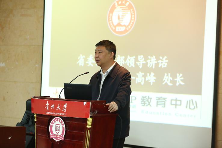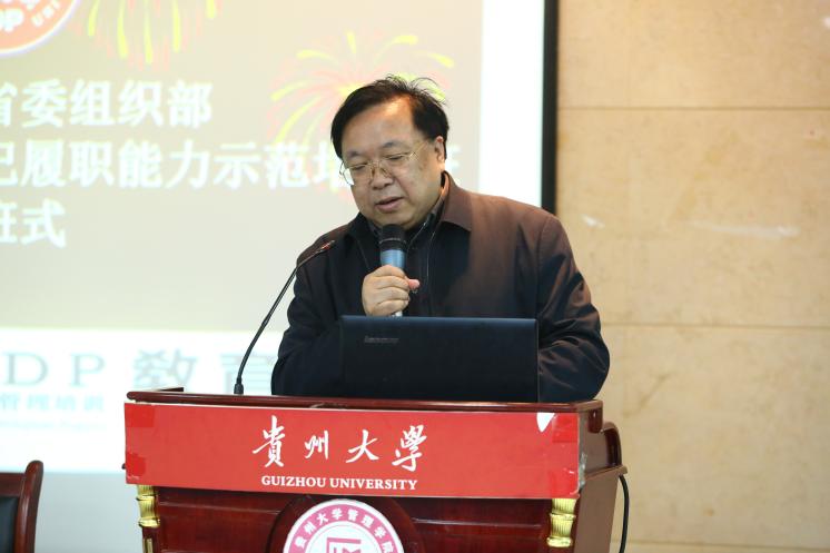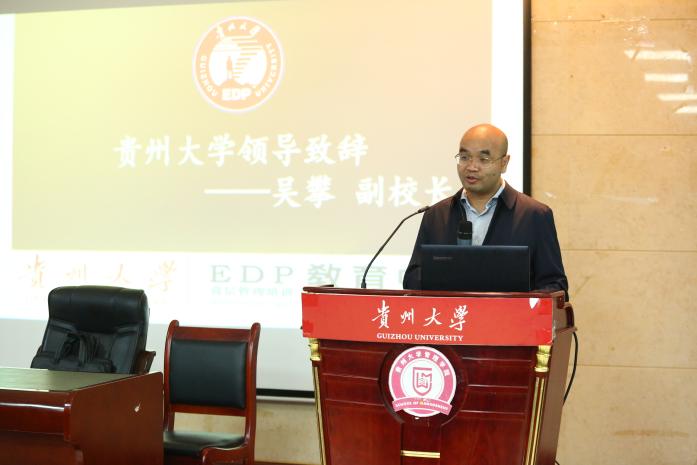 贵州大学副校长吴攀,贵州省委组织部党员教育中心教育处处长高峰,贵州大学党委组织部副部长张瑞良,贵州大学对外合作处副处长、贵州大学教育培训管理工作专班负责人付芳,体育竞猜网(中国)官方网站党委书记王秀峰,体育竞猜网(中国)官方网站院长李烨,体育竞猜网(中国)官方网站副院长宋山梅,贵州大学EDP教育中心主任张勇出席本次培训开班式。