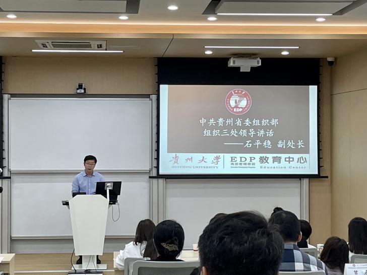 中共贵州省委组织部组织三处副处长石平稳,贵州大学党委副书记令狐彩桃、贵州大学组织部副部长张瑞良,贵州大学对外合作处副处长,贵州大学教育培训管理工作专班负责人付芳,体育竞猜网(中国)官方网站党委书记王秀峰、体育竞猜网(中国)官方网站副院长宋山梅,贵州大学EDP教育中心主任张勇出席本次培训开班式。