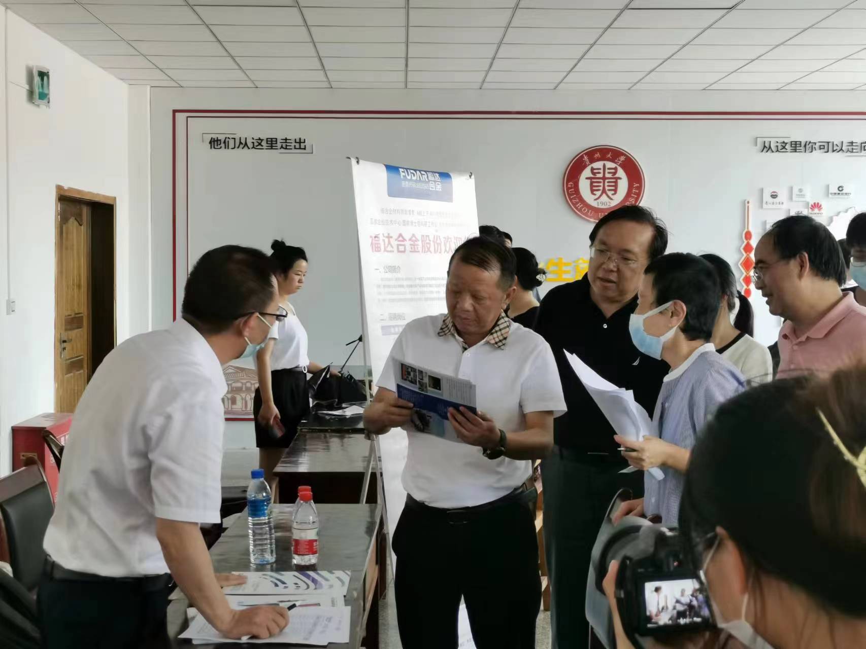 在管理学院党委书记王秀峰、副院长罗敏及相关科室负责人的陪同下,贵州大学副校长李军旗亲临招聘会现场指导,详细了解了招聘企业信息和同学们的应聘情况。